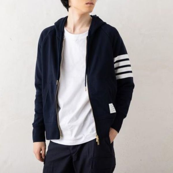 カジュアルな印象が強いパーカーですが、トムブラウンのパーカーは素材の良さと形の美しさからカジュアルの中にもエレガントさが感じられます。着脱がしやすいジップタイプのため、1日の気温差が激しい春に重宝する1着です。