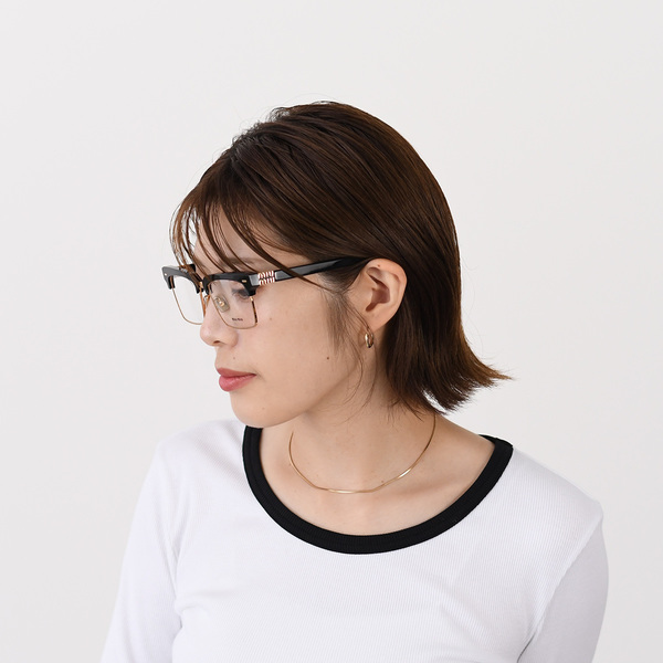 2025年は、クラシカルな雰囲気を引き立てる華奢なメタルフレームやフチのないリムレスタイプのアイウェア・メガネがトレンド。肌にすっと馴染みやすいので、比較的どの世代の女性も取り入れやすいのが特徴です。