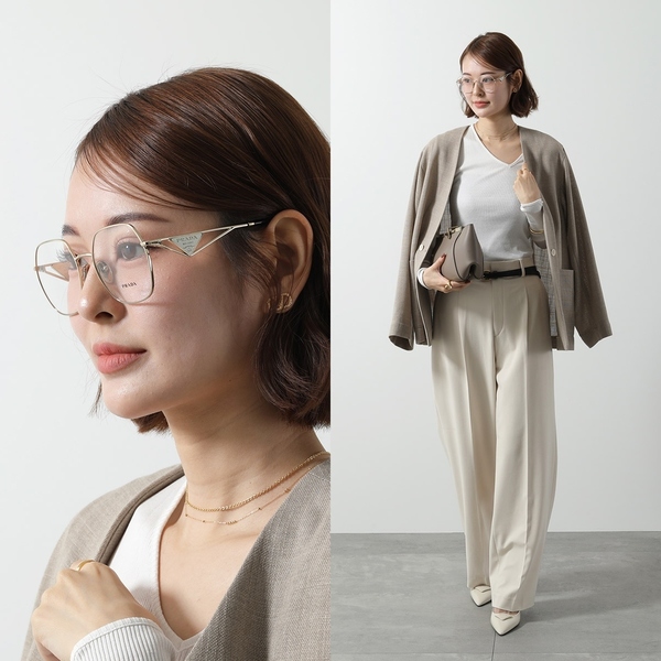 エッジの効いたアイウェア・メガネが揃うPRADA(プラダ)からご紹介したいのは、メタルフレームが今年らしいこちらのモデル。肌になじみやすいのにしっかりと存在感を発揮しています。サイドのトライアングルロゴもスタイリッシュ!