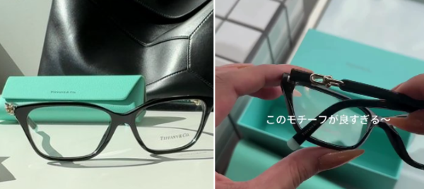 Tiffany & Co(ティファニー)で人気のアイウェア・メガネは、テンプル部分が華奢な気品あふれるデザインが豊富♡フレーム自体も太すぎない大人っぽさがあり、通勤シーンでも取り入れやすです。
