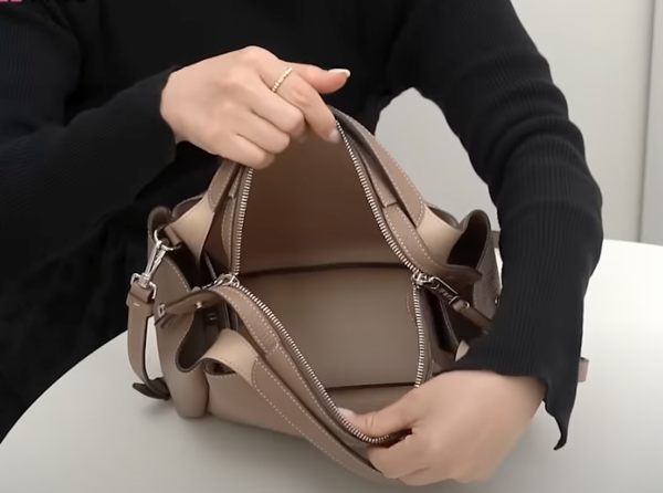 「バウレットミニバッグ」は、側面までしっかりついてるからジッパー付きで、がばっと開きやすくたっぷり荷物を入れても中身が見えないから安心安全です。やっぱりお出かけ中も安心感抜群なバッグといえばファスナー付きのバッグなんです。