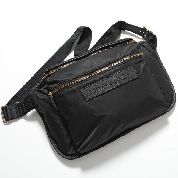 ナイロンとレザーのコンビが上品なウエストバッグは「フェリージ」のアイテム。シックなウエストバッグなのでドレススタイルにも似合います。