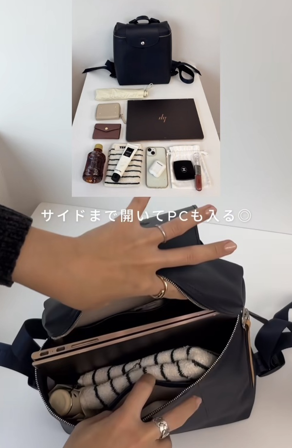おしゃれなだけでなく、収納力を兼ね備えているところが嬉しい。パソコンも入るので、通勤バッグとしても活躍します。