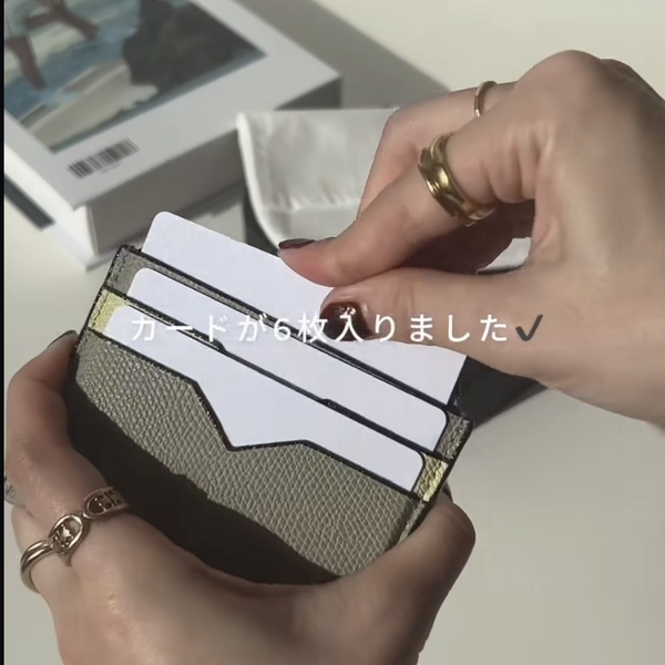 カードが6枚入るので、ミニマル派の方におすすめしたいアイテム。カラーも上品で長く使えそうですね。