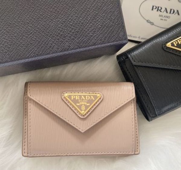 PRADA(プラダ)で大人気のコンパクトウォレットは、あえて春色ピンクをゲットして大人可愛く♡モードなトライアングルロゴが柔らかい雰囲気で、レザーの上質さを引き立てます。定番の三つ折りタイプなので、実力も間違いなし!