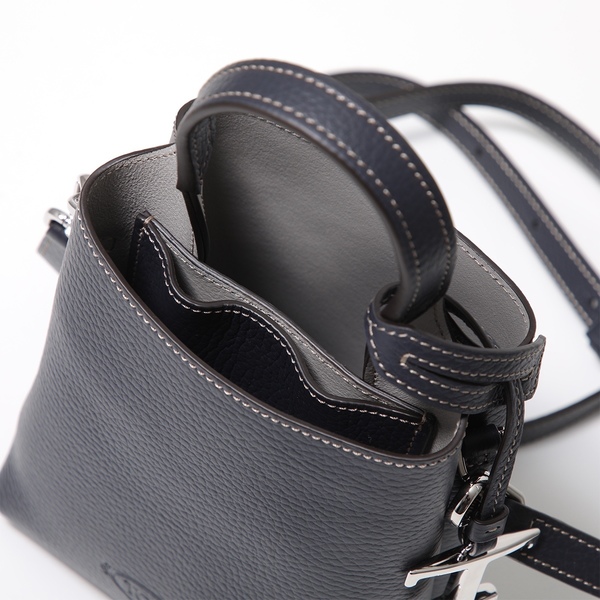 お仕事シーンにも普段使いにも、程よいスペックのバケット型バッグ。シンプルながらもTタイムレスのチャームが印象的です。