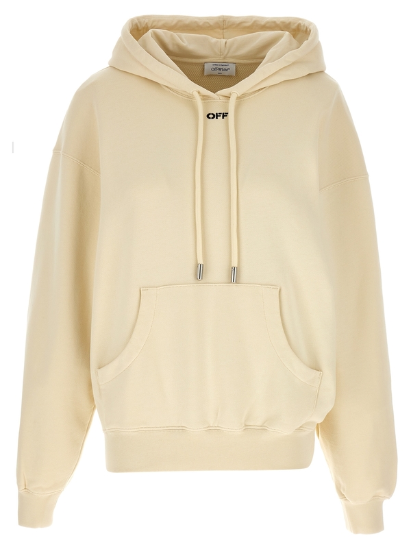 フロントに小さく「OFF」とバックにはバラのグラフィックをあしらったオフホワイトのプルオーバーパーカー。ややルーズなシルエットですがオーバーサイズすぎないので大人っぽい印象です。