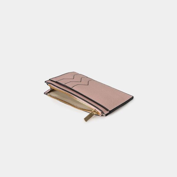 コイン、カード、紙幣をコンパクトなケースにまとめた、ファスナー付きポケット付きカードホルダーは、小さめハンドバッグやポケットにも簡単に収まり身軽に過ごしたいあなたにぴったり。ブラックラッカー仕上げのコスタエッジがエレガンスを引き立てます。