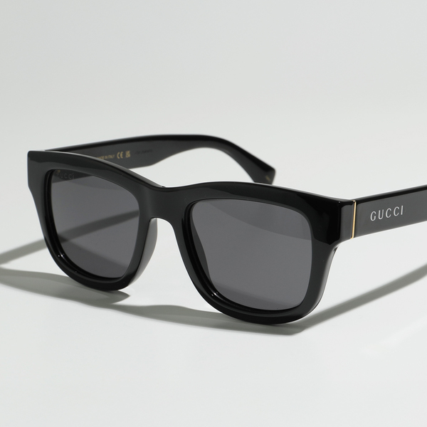 スクエアタイプのウェリントン型のグッチのサングラスです。厚みのあるセルフレームがクラシカルな雰囲気を醸しています。テンプルに入ったロゴがアクセント。