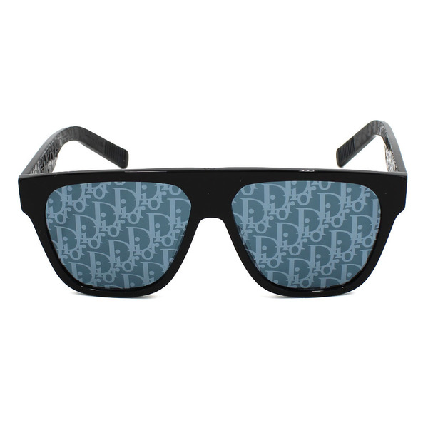 レンズのDiorロゴを散りばめたインパクト抜群の逸品。形はベーシックなウェリントンのセルフレームなので着こなしを選びません。