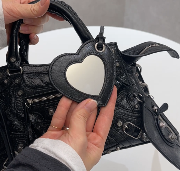∟調整可能なショルダーストラップに、ポーチやチャームも付いてくるネオカゴール。ハート形のミラーがなんともキュートで、カジュアルさの中に女性らしさもある贅沢な逸品とも言えます!