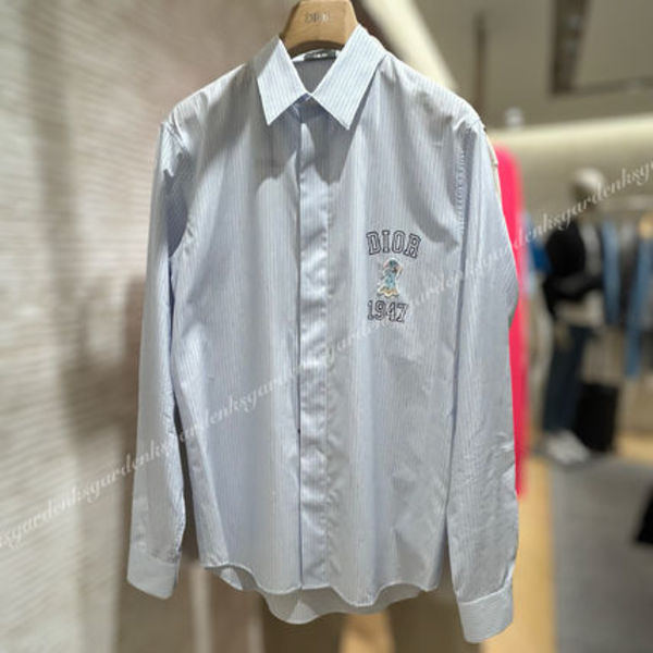 爽やかなライトブルーのストライプシャツの胸にロゴとパッチをあしらったディオールらしい遊び心が感じられるシャツです。スラックスに合わせてもデニムに合わせてもサマになる逸品。インナーとしても活躍してくれます。