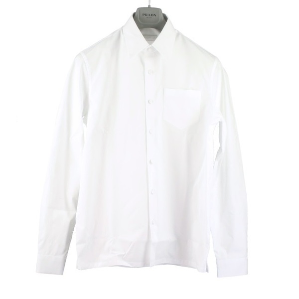 コットン素材のシンプルな白シャツはプラダの定番アイテム。クセのないデザインなのでどんなスタイルにも似合います。ノームコアやミニマルな着こなしにも似合う逸品です。