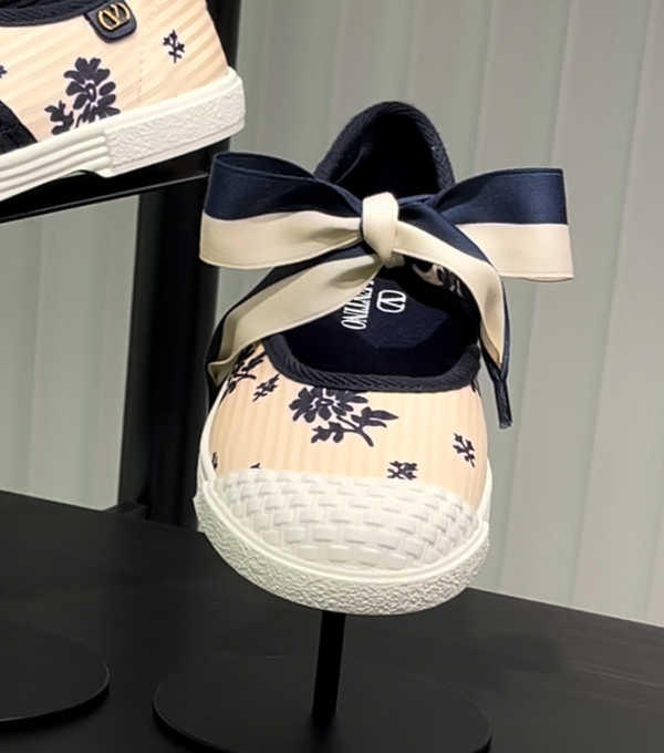 バレエコアスニーカーの中でもとびきりガーリーなのがVALENTINO(ヴァレンティノ)。花柄だけど落ち着いたカラーリングでまさに大人女子のバレエコアスニーカー。