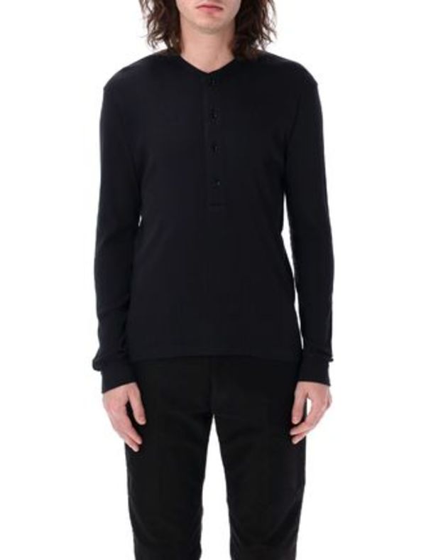浅めのVネックが色気を感じさせるトムフォードのロンTです。上質な素材を使用した無地のロンTはドレススタイルにも映えます。