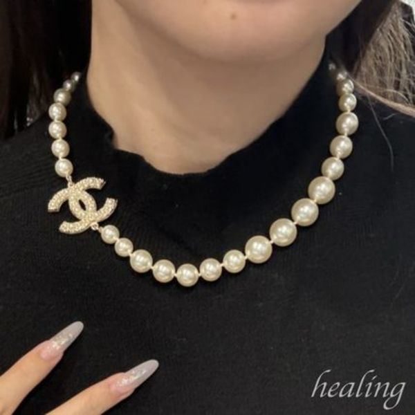 チョーカーは、CHANEL(シャネル)の大定番アイテムでもあるため、多様なデザインから選ぶことができます。中でも安定的に人気が高いのがパールタイプ!カジュアルからドレスアップまで幅広いコーデに華を添え、気品たっぷりな首元を演出してくれます。