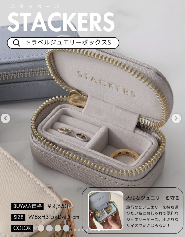何かと役立つ持ち運び用のSTACKERS(スタッカーズ)ジュエリーボックス。小さいジュエリーは無くしやすいので1つ持っていると便利ですよね。価格も程よいのでちょっとしたプレゼントにいかがでしょうか。