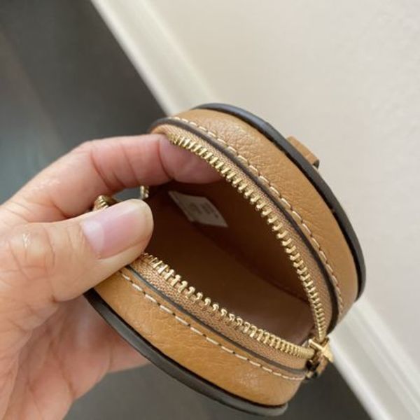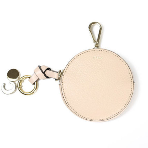 シボ感のある上質レザーと控え目なCチャームが大人っぽい、薄型のラウンドポーチ。クロエらしい上品なデザインでどんなテイストにも寄り添ってくれる懐の深いアイテム♡バッグチャーム初心者やベーシック派の大人の方におすすめです☝