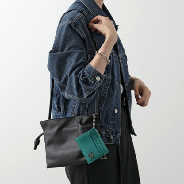鮮やかカラーがパッと目を惹くコイン&カードケース。ロエベのバッグ同様に上質レザーとアナグラムをあしらい、高級感もしっかりキープ♡ジップ式のコインパースにカードスロット×6とこれでもかというほどの収納力も兼備!ICカードと小銭、折り畳んだお札を入れておけば、お財布の役目がこれ1つで完結◎