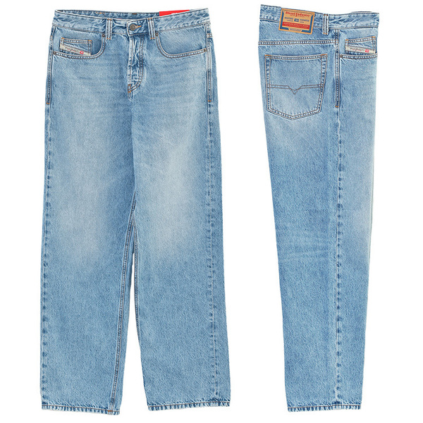 DIESEL(ディーゼル)のワイドデニムは、ライトブルーのウォッシュ加工が施されており、クリーンな仕上がりが特徴です。ハードすぎないユーズド加工が大人っぽい雰囲気を醸しています。