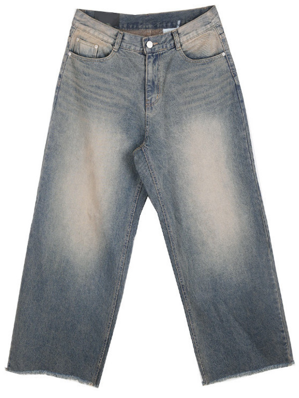 ヴィンテージ加工が施されたHOLY IN CODE(ホーリーインコード)のワイドデニムは、トレンドのストリートスタイルに最適なアイテム。カットオフされた裾が軽やかでワイルドな雰囲気です。