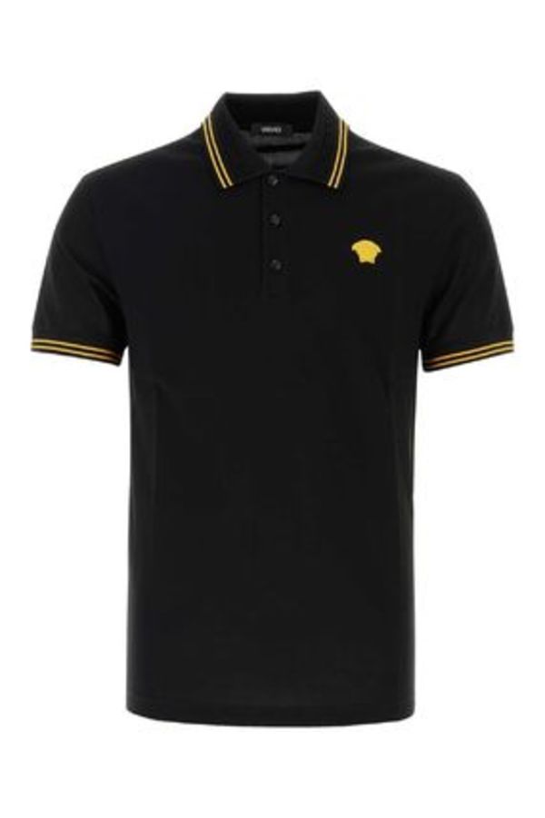黒地にゴールドのメデューサ刺繍やラインをあしらったゴージャスなヴェルサーチェのポロシャツです。シンプルですがエレガントでラグジュアリーな雰囲気が漂う1着。