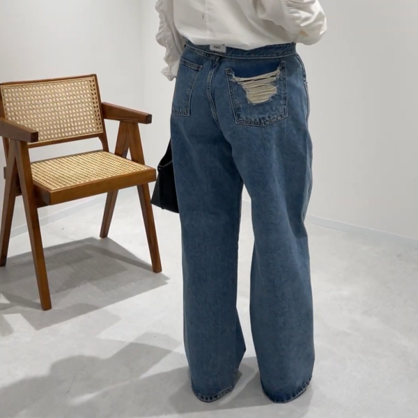 ゆるっときれいめシルエットな大人デニム♡ポケットのダメージ加工やウエスト部分のブランドロゴをあしらったバックスタイルがポイントです。ORRにはさまざまなデニムが展開されているので、デニム好きさんは一度チェックしてみると欲しいモノに出会えそうです。