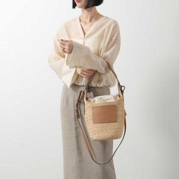 人気の『NISIDA BUCKET』は、レザーとラフィアの組み合わせが大人っぽさ◎今年らしいホーボーバッグと、ドローストリングのライニングがポイントです。