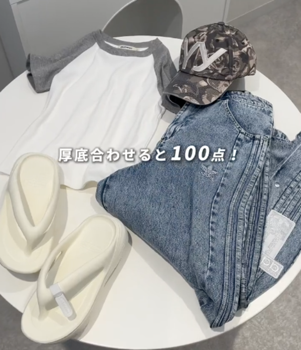 ∟丈は長めのため、厚底のサンダルとの相性は抜群!脚長効果も高い優秀な一本で、海外セレブのような、あざとくないセクシーさを狙えます。