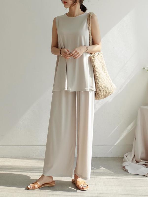 ↑何も考えず着れる”セットアップ”は何枚あっても困らない!プチプラ見えしないものを選ぶコツとしては、チープに見えない素材感。