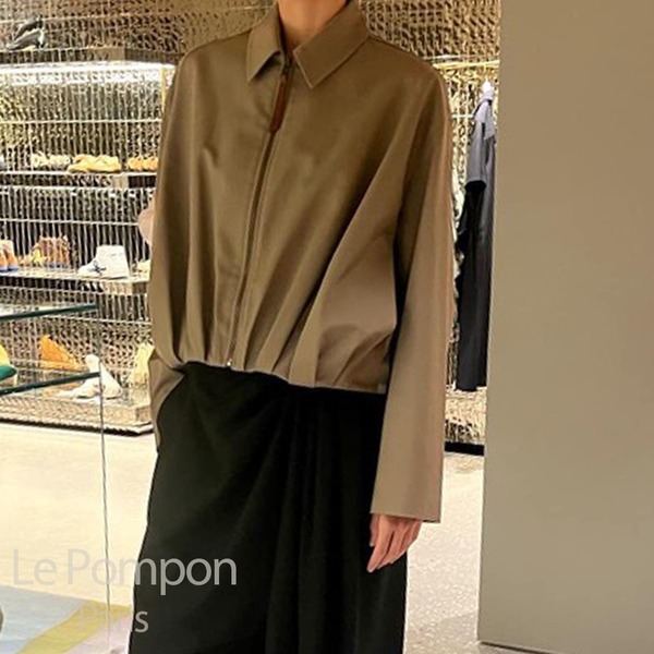 ライトウェイトのコットンとシルクツイルを採用した撥水仕様のジャケット。バルーンシルエットとバックにハンドギャザーを寄せたアシンメトリーなドレープが特徴です