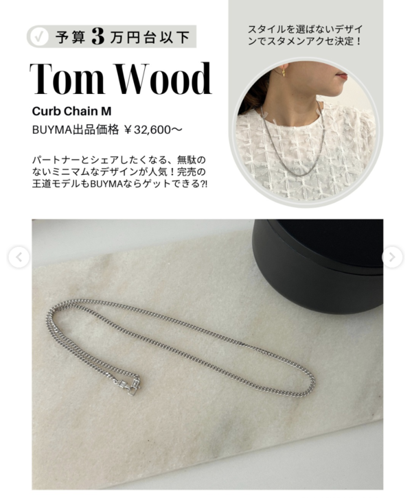 男性からも女性からも人気の高いTom Woodも外せない。完売しているモデルでも、BUYMAなら手に入るところが嬉しい!服を選ばないのでスタメンアクセになりそうです。