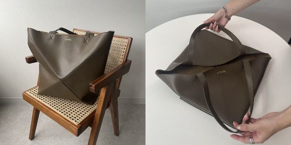 ハイブランドで折りたためるトートバッグを探しているならLOEWE(ロエベ)の『パズル トート』がおすすめ。レザーピースを組み合わせた幾何学的なデザインが特徴的で、折りたたむとフラットになります。ラージサイズなら、ノートPCも収納できます。