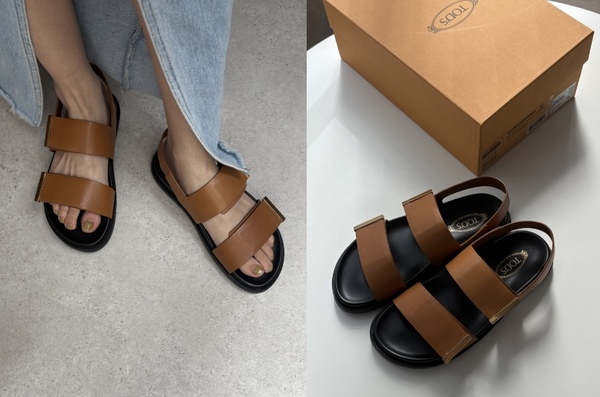 イギリスが誇る世界有数のレザーグッズブランドとして名高いTOD'S(トッズ)のサンダルは、上質なカーフレザーをもとに製作されている逸品。ダブルストラップの先端にはロゴ入りのメタルモチーフがあしらわれていて、かかとまで足全体をしっかりホールドしてくれるので歩きやすさも申し分ありません。