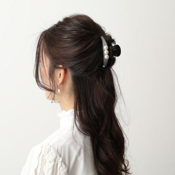 大粒パールが3つあしらわれたヘアクリップは、洗練されたディティールでスカートやワンピースコーデと相性抜群。定番のブラックに加え、ベージュやべっ甲カラーなどバリエーションも豊かなのがポイントです。