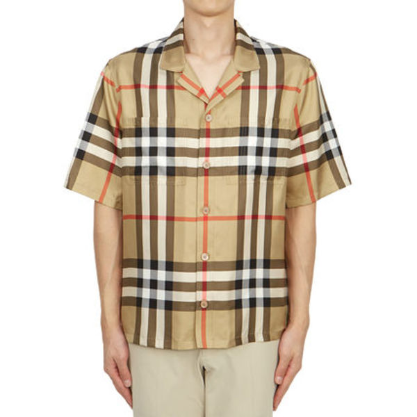 アイコニックなバーバリーチェックの半袖シャツは間違いなく着こなしのメインとなるアイテム。オープンカラーシャツなのでこなれたムードを醸してくれる1枚です。
