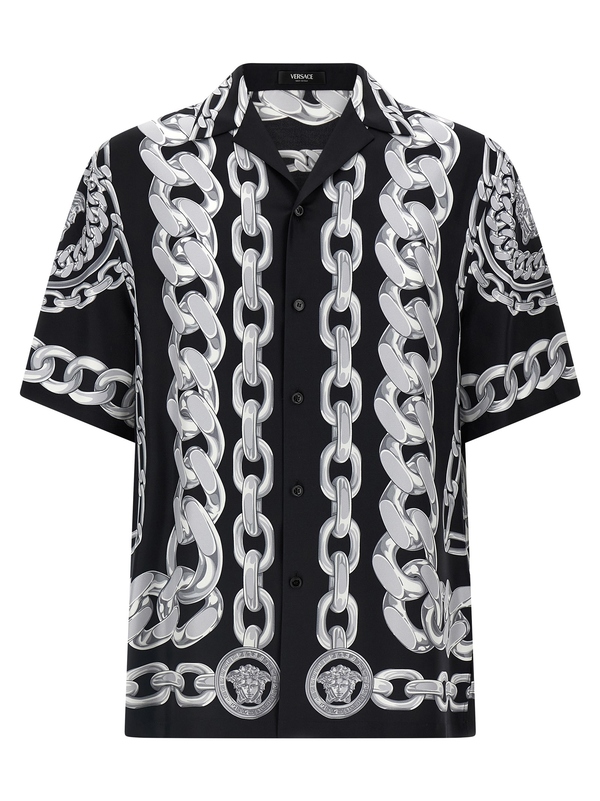 チェーンとアイコニックなメデューサをあしらったインパクト抜群のオープンカラーシャツです。ヴェルサーチェらしいグラマラスな1枚。デイリースタイルにもモードスタイルにも似合うアイテムです。