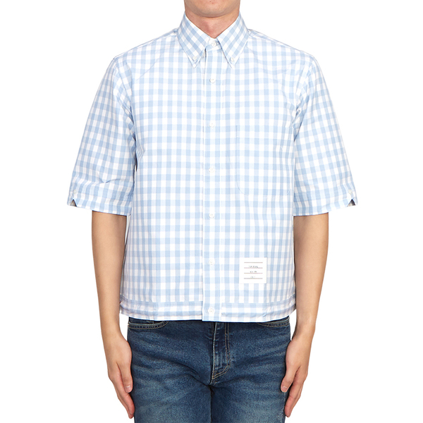 サックスブルーと白のギンガムチェックが爽やかな半袖シャツはトムブランのアイテム。ブルゾンのような丈の短いアイテムなのでタンクトップやTシャツの上に羽織ってもおしゃれです。ボックスシルエットなので幅広い年代の方に似合います。