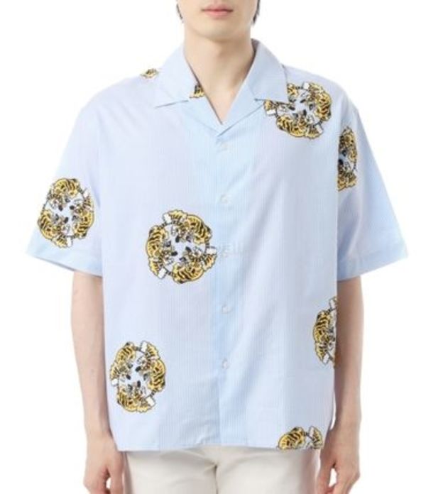 サックスブルーと白のストライプが爽やかなオープンカラーシャツにアイコニックなタイガーのプリントをあしらったポップな1枚。ケンゾーらしい遊び心を感じさせる半袖シャツです。ややルーズなシルエットもイマドキ。