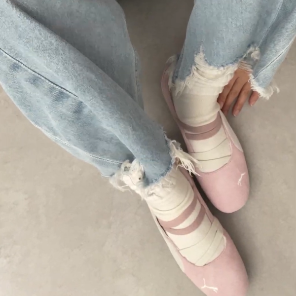 PUMA(プーマ)の『スピードキャットバレエSDスニーカー』は、SNSでもバズり中の注目モデル♡バレエコアなデザインが可愛らしく、ソールがスニーカーっぽくて歩きやすさも兼ね備えています。色も可愛らしく、レースなどの甘めのアイテムとも相性抜群。ブラックコーデの差し色にもおすすめです。