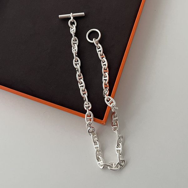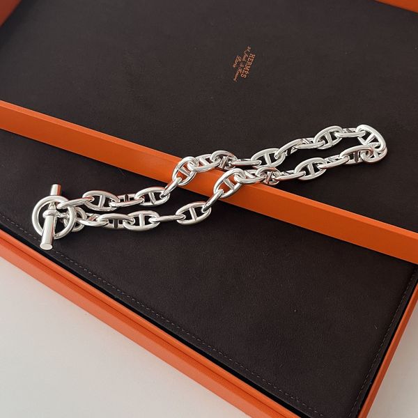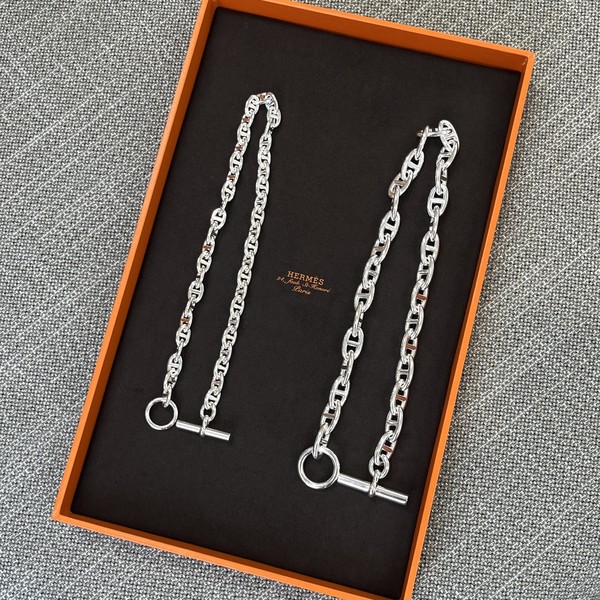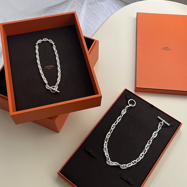 錨の鎖のようなチェーンは、ブランドイニシャルのHがモチーフに。ネックレスは現在3つのサイズ展開があり、チョーカーのように取り入れるのがトレンドです。