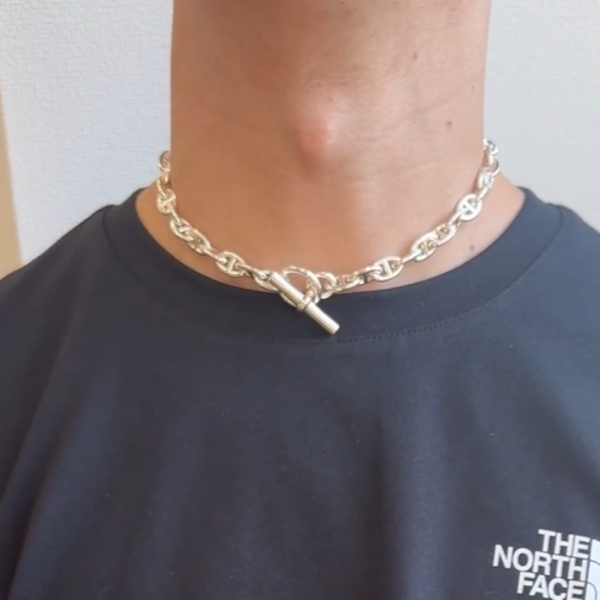 一番小さいPMサイズは、繊細なネックレスを探している方におすすめ。上品さが一番あるサイズ感なので、カジュアルにはもちろん女性ならビジネスシーン、オケージョンにも活用します。全長も短くチョーカーっぽくつけやすいです。