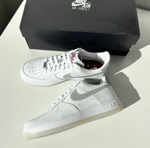側面の“スウッシュ”+ヒールタブ+シュータンにシルバーの輝きを放つグリッターを取り入れているAIR FORCE 1(エアフォースワン)は、海外通販サイトのBUYMAでも人気爆発中。透明感のあるアウトソールが絶妙な洒落見えを叶えてくれるスペシャルな一足です。