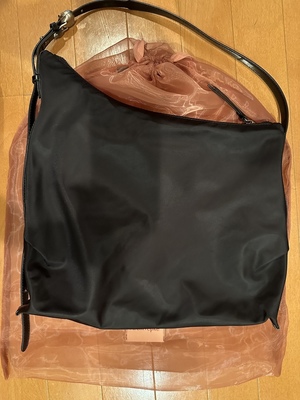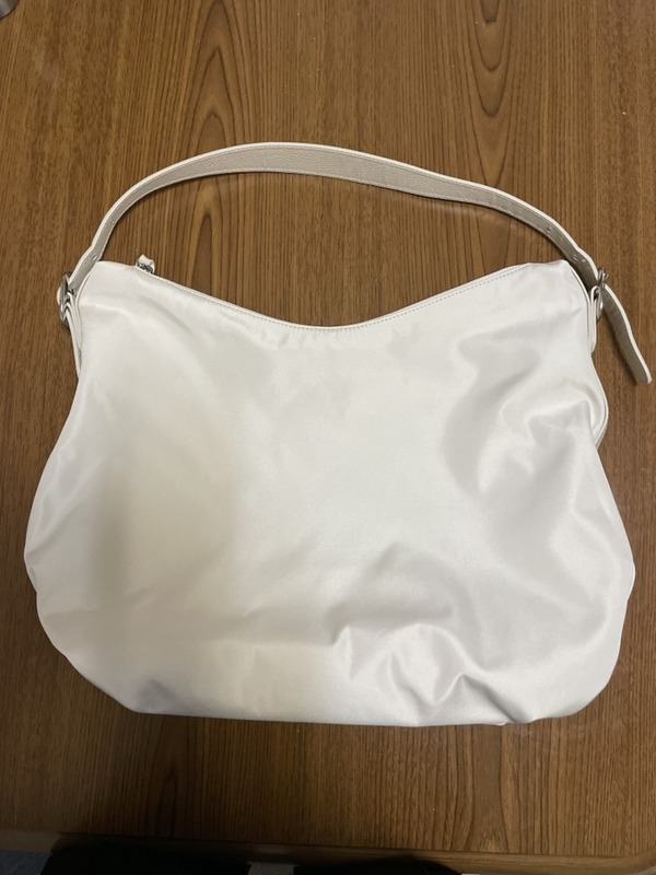 1番使いやすいナイロン素材にしました。長さの調節で手提げ肩掛けショルダーと変えれるし、容量もたくさん入って軽くてこれから使用する出番が多そうです!そしてバッグが入っていた巾着も可愛いし、バッグの金具ロゴもお洒落で可愛い!オススメのブランドです。