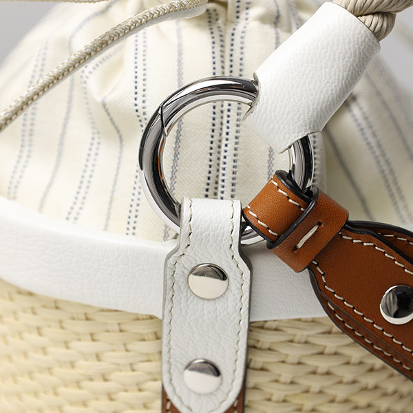 レザーの手編みハンドルやフロントに結び目のあるジップデザインなど、「ル・シティ」の特徴的なディテールがそのままかごバッグに。