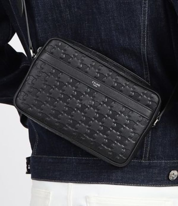 トリオンフが型押し加工されたカーフレザー製のCELINE(セリーヌ)のカメラバッグ。クラシカル且つ気品の漂うアイテムなのでドレススタイルにもおすすめ。
