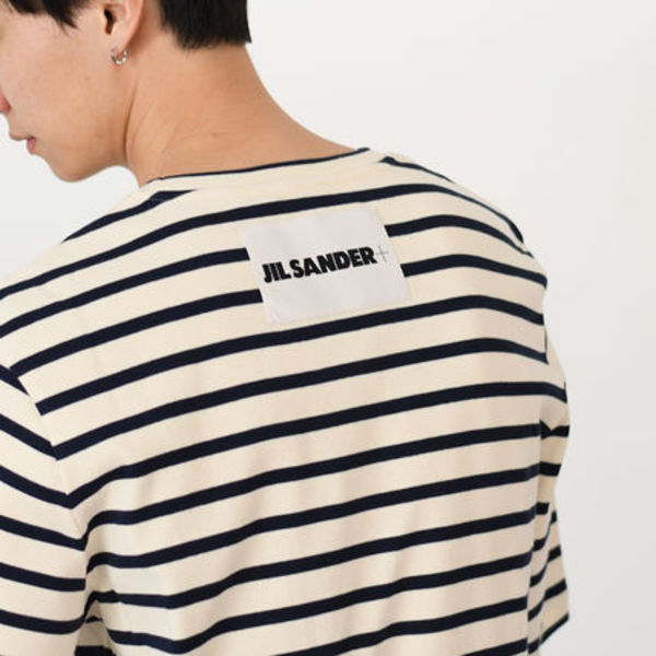 アイテムによっては胸元に大きく「Jil Sander」ロゴが入っているものもありますが、基本的にはロゴは控えめのブランド。またロゴそのものがデザインなので、ワンポイントで入っているだけでアイテムの格が上がる印象に。