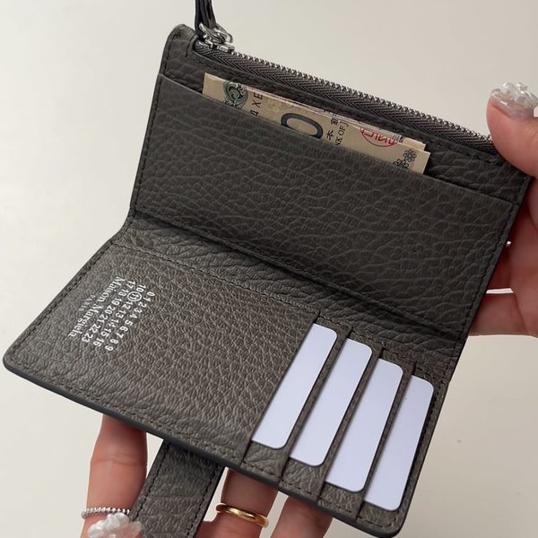 ∟クリップとファスナー開閉で中を開けると、内側にはカードスロットが4つとフリーポケットが1つ。マルジェラお馴染みのナンバリングロゴもデザインされています。シンプルながら、カードは4枚とモードな包容力を併せ持ちます!