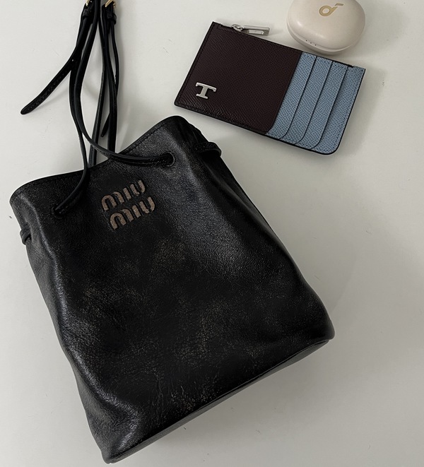 ∟MiuMiu(ミュウミュウ)のナッパレザーポーチは、既に長年愛用したようなくたっと感のあるレザーが魅力的な「巾着バッグ」。クラシカルな雰囲気もあり、一線を画したオーラあふれるデザインで、思わず男女でシェアしたくなります!