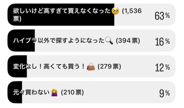 驚愕の63%!「高すぎて買えなくなった」ハイブラバッグ